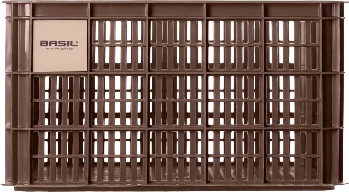 De Basil fietskrat in de maat L is een bruine fietskrat voor op een dames- of herenfiets. De fietskrat is gemaakt van duurzaam materiaal en heeft een inhoud van 40 liter.