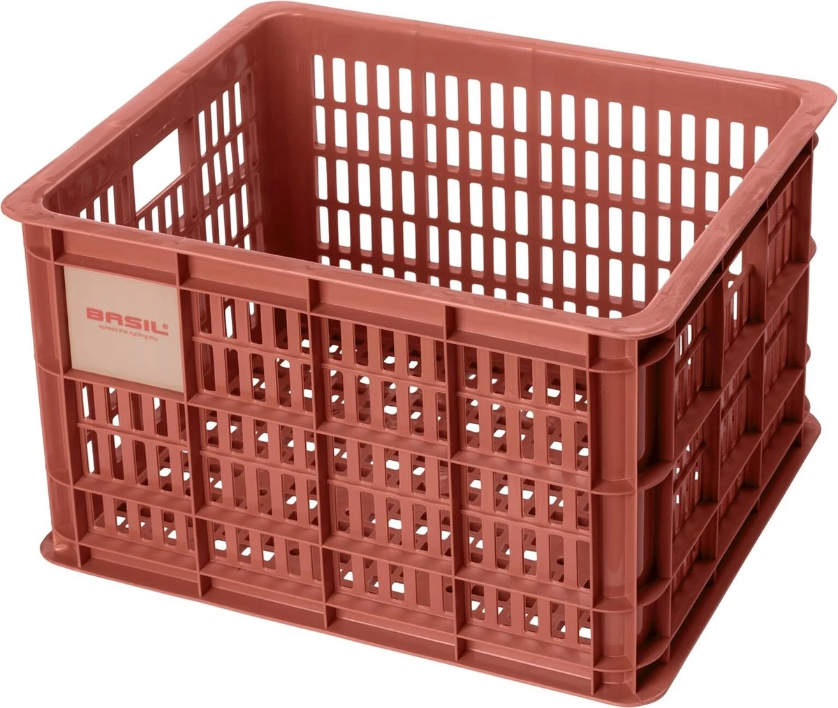 De Basil fietskrat in de maat M is een bruine fietskrat voor op een dames- of herenfiets. De fietskrat is gemaakt van duurzaam materiaal en heeft een inhoud van 29,5 liter.