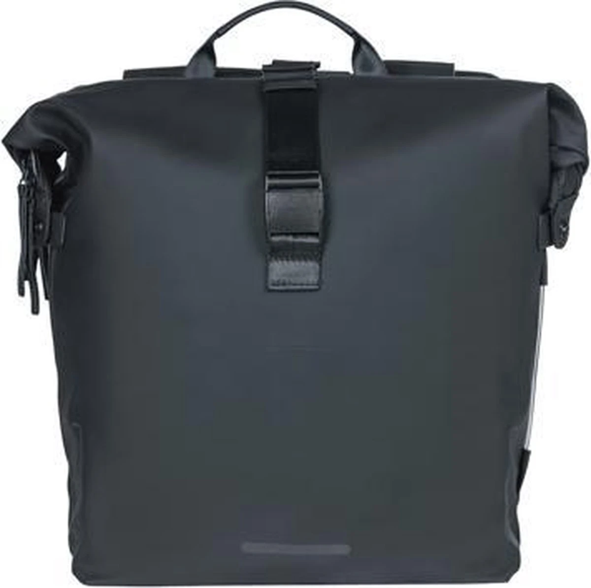 Ben je op zoek naar een ruime fietstas die er ook nog eens mooi uitziet? Dan is de Basil SoHo dubbele fietstas Nordlicht MIK in de zwarte kleur echt iets voor jou. Gemaakt van mat PU-materiaal dat erg zacht aanvoelt* met een inhoud van 41 liter. De tas is waterdicht (IPX3), waardoor jij jouw spullen altijd droog meeneemt. De tas sluit je af met een roltop die je aan de zijkanten van de tas met drukknopen bevestigt. Aan jouw veiligheid is ook gedacht. De tas is namelijk voorzien van Nordlicht Technology**, een geïntegreerde LED-strip. Zo val je in het donker beter op. De LED-verlichting werkt op 3x AAA batterijen (apart verkrijgbaar). Heb je veel en zwaardere spullen in je tas? Dan kun je de tas combineren met de Basil Afstandhouder (apart verkrijgbaar). Deze houder voorkomt dat de tas in de spaken van je fiets komt. Je bevestigt de tas eenvoudig dankzij de voorgemonteerde MIK-adapterplaat. Met deze adapterplaat klik je de fietstas eenvoudig in jouw bagagedrager met MIK-profielen of een MIK-bagagedragerplaat. Wil je de tas meenemen de winkel in? Dan klik je de mand er net zo gemakkelijk weer af. De MIK-adapterplaat past op veel bagagedragers, dames-, heren-, en de elektrische fiets. Eigenschappen: Waterdichte dubbele fietstas inclusief roltopsluiting. Voorzien van geïntegreerde LED-verlichting (batterijen apart verkrijgbaar). Ruime inhoud van 41 liter totaal. Inclusief voorgemonteerde MIK-adapterplaat en daardoor makkelijk te bevestigen. *Schuren tegen wat ruwere oppervlakten kan ervoor zorgen dat het materiaal beschadigt. De tas blijft ook dan waterdicht met dezelfde hoge IPX3 norm. ** Nordlicht Technology kun je gebruiken als een aanvullende verlichting en treedt op geen enkele wijze in de plaats van de wettelijk vereiste fietsverlichting. Voor het gebruik van alle verlichting dien je te allen tijde de wettelijke regels met betrekking tot fietsverlichting van het land op te volgen.