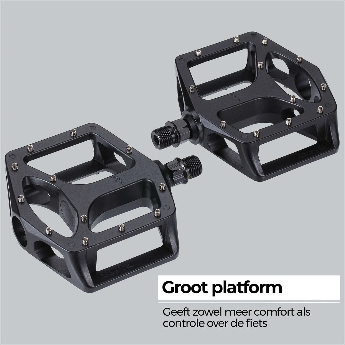 De body van deze MTB-pedalen is gemaakt van aluminium. Dankzij het gebruik van dit materiaal in combinatie met een stalen as is het pedaal extreem sterk en zal deze altijd goed blijven functioneren. Je hoeft je nooit meer zorgen te maken over roest of vuil in de lagers.