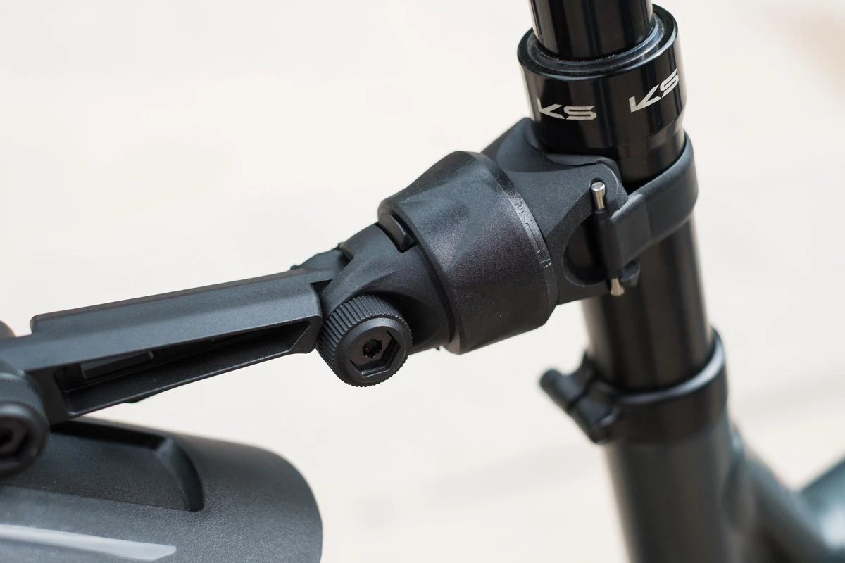 Met de TPR mudflaps beschermd dit spatbord jou en je fiets tegen regen en vuil. Het TPR materiaal zorgt er voor dat het spatbord buigzaam is, maar niet zal breken tijdens een val. Dit achterspatbord kan makkelijk bevestigd worden aan de zadelpen van je fiets met het TurnFix bevestigingssysteem. Zelfs op je full-suspension fiets is de MTBProtector het perfecte spatbord zonder enige schade achter te laten op je fiets.