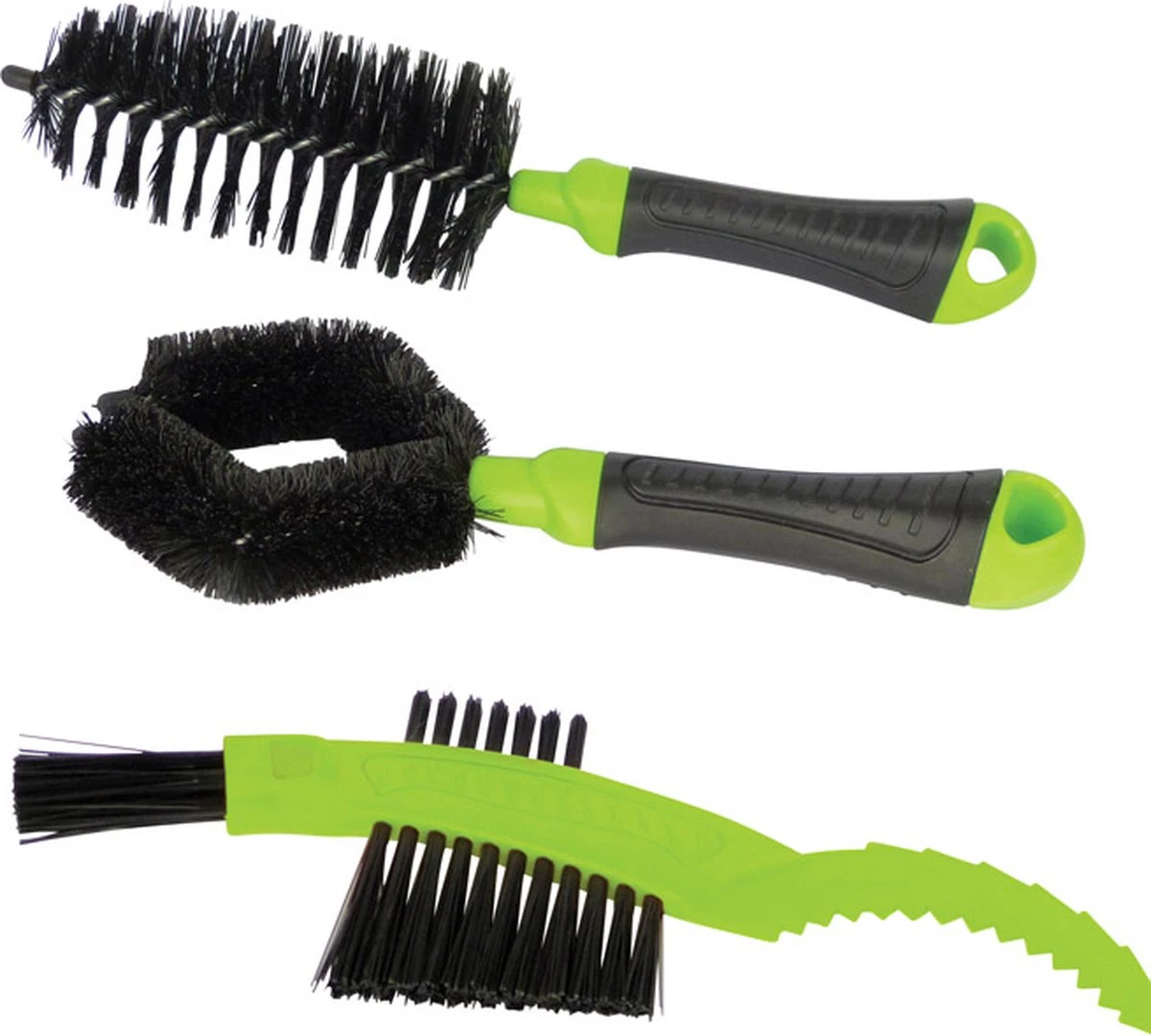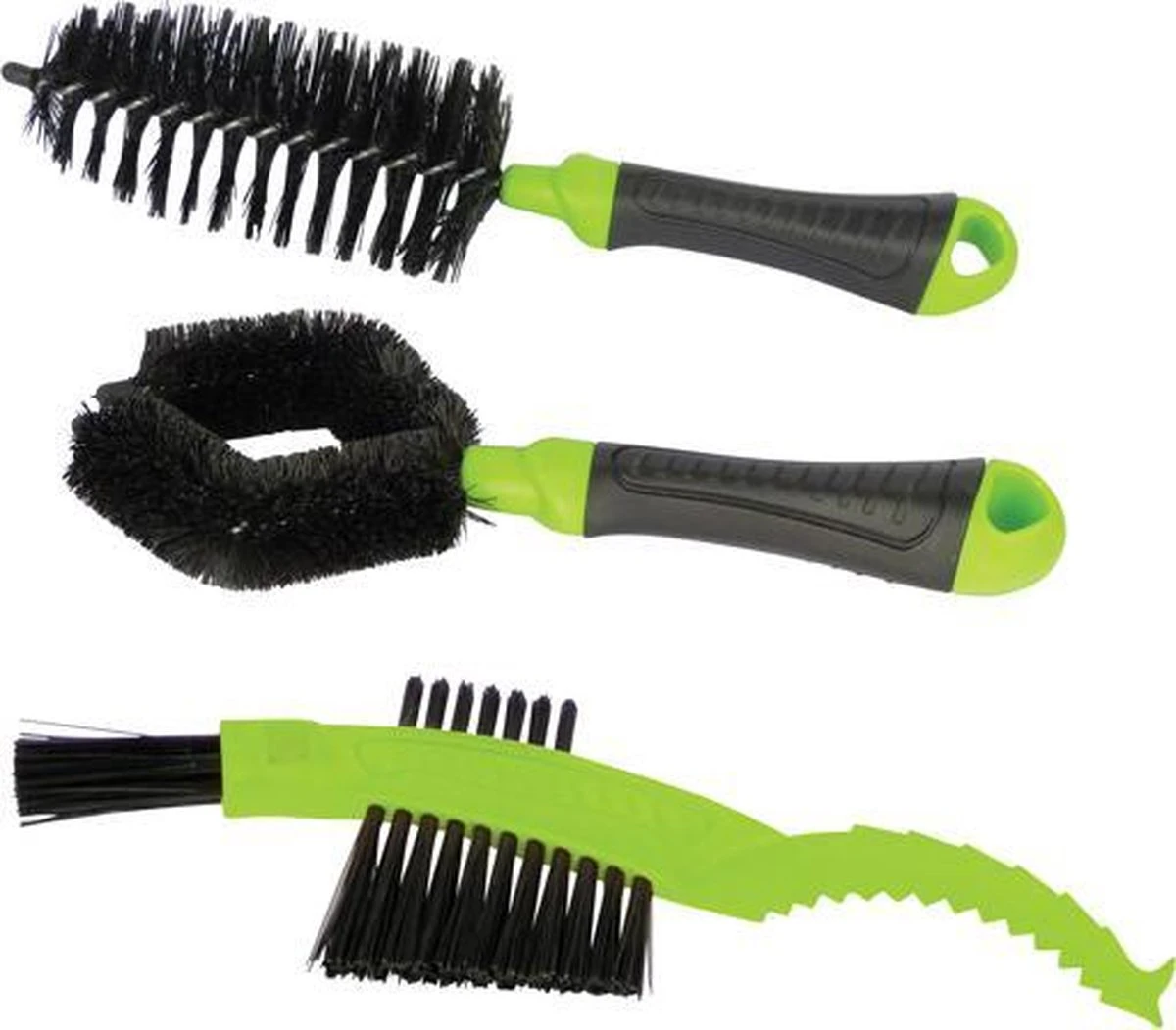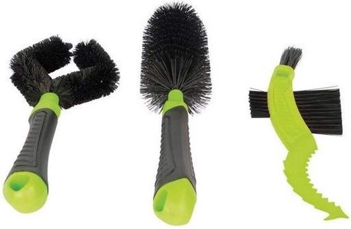 - Fiets borstelset: Complete set met drie verschillende borstels voor het gemakkelijk reinigen vaan spaken, frame, derailleur, ketting en remmen.