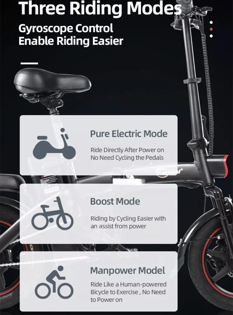 F-Wheel DYU A5 – Elektrische Vouwfiets – E Bike – 14 Inch – 7.5 Ah – 25km/u – Zwart