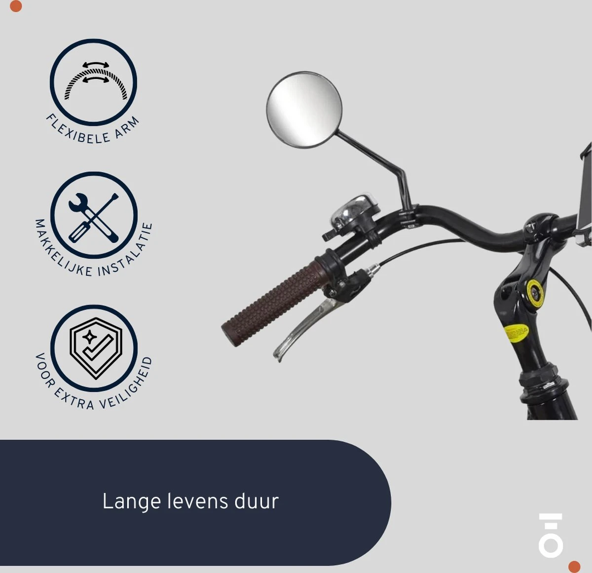 De achteruitkijkspiegel is op verschillende manieren te bewegen. Doordat een rotatie van 360 graden mogelijk is, kun je vanuit verschillende hoeken kijken. Pas de hoek aan naar je eigen voorkeur, zodat je altijd goed zicht achter je hebt. Klap de spiegel na gebruik in, zodat andere mensen geen last hebben van een uitstekend onderdeel op je fiets. Dit is dus extra veilig en bespaart ruimte.