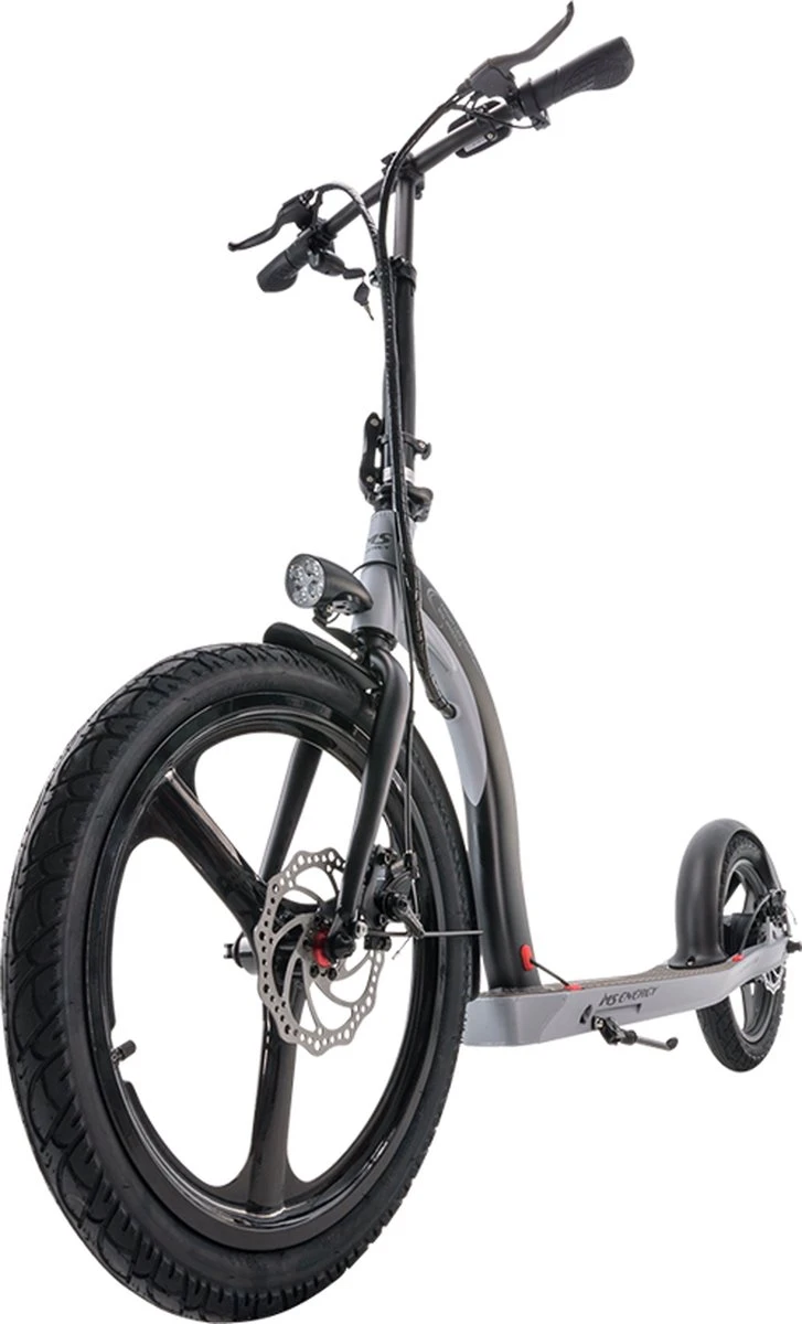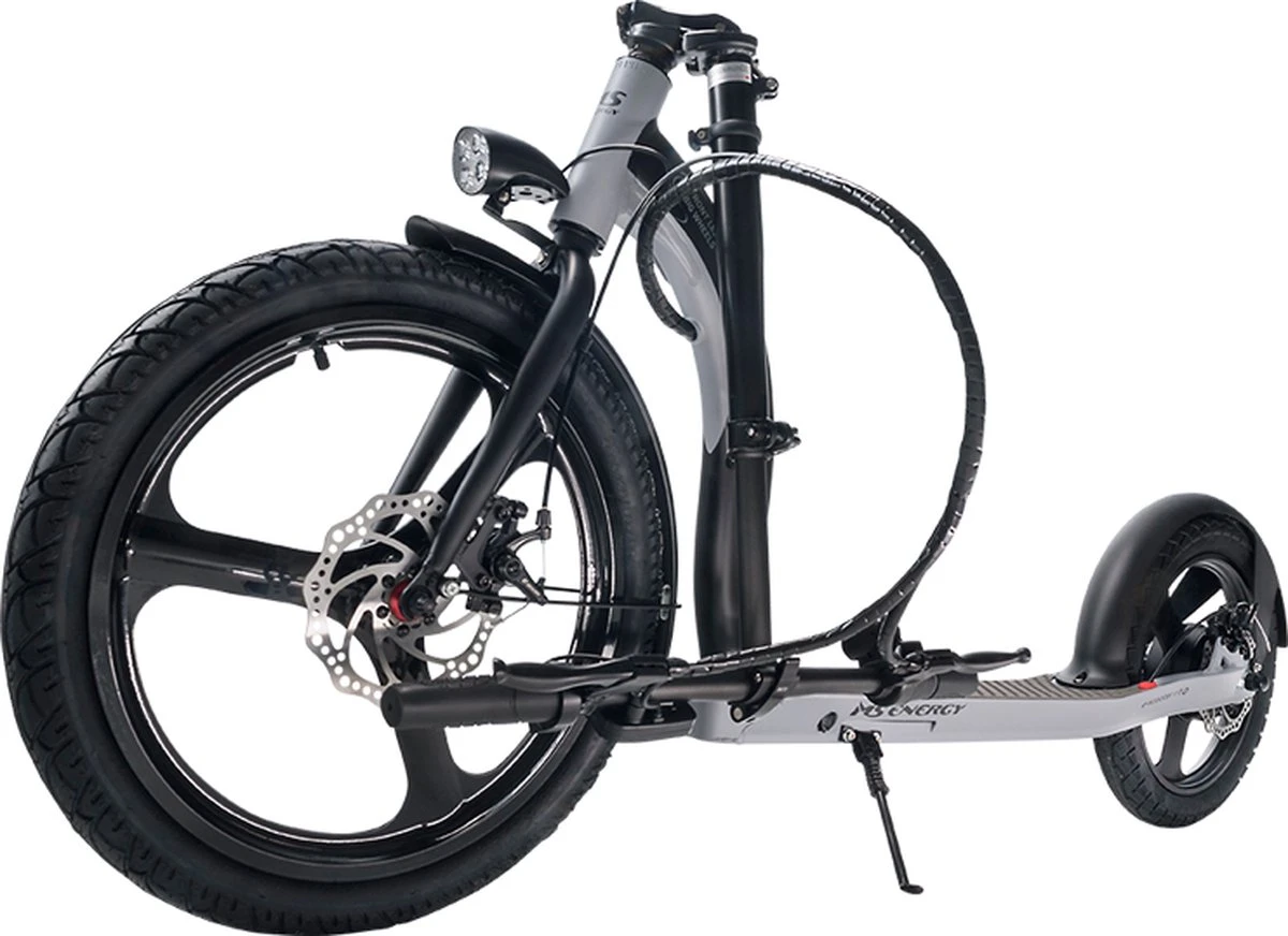 Deze innovatieve hybride step werd door MS Energy ontwikkeld als een synthese tussen de flexibiliteit van een elektrische step en de stabiliteit van een elektrische fiets. De grote 20″ voorwielen en 16″ achterwielen, in combinatie met de dubbele schijfrem, garanderen een soepel en comfortabel rijgedrag. De r10 is het perfecte alternatieve vervoermiddel, ideaal niet alleen voor in de stad of op de weg, maar ook voor langere ritten zoals het dagelijkse woon-werkverkeer.