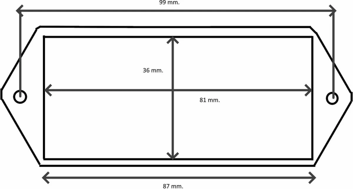 - Afmetingen inclusief Bodemplaat: 104 × 40 mm.