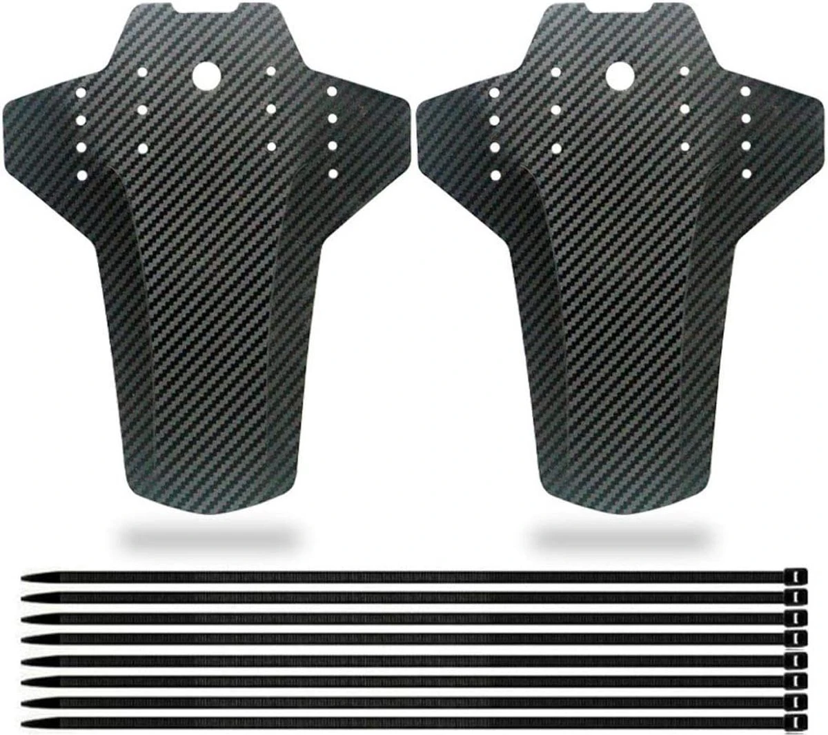 Set Van 2 – Universeel Spatborden – Inclusief Bevestiging Materiaal – Tie Wraps – Mountainbike Spatbord -Verstelbare Voor + Achter MTB Spatbord Set – Compatibel Met 20 “/24″/26 “/27.5″/29” Fiets – MBT Spatborden – 3D Carbon Patroon – Zwart