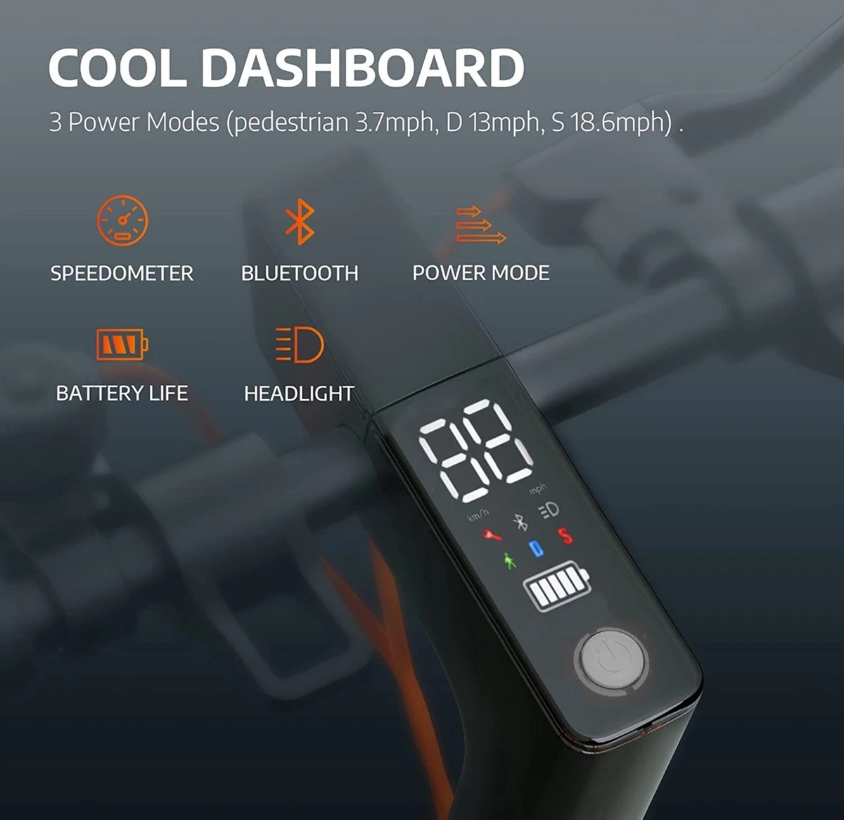 - Single press. Long press to shut down. When electric Scooter is on, a short single press will switch headlights on/off.